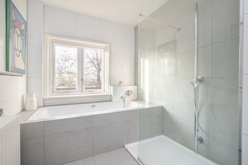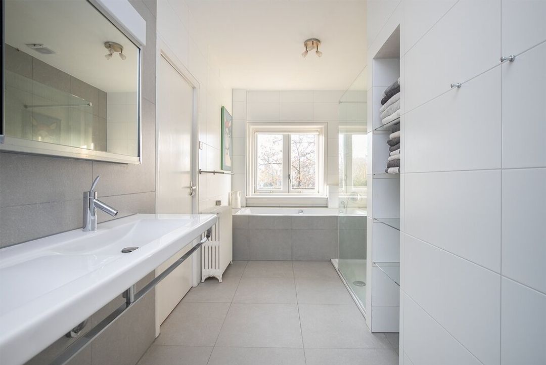 Het ‘hart’ op de verdieping en ruim van opzet. De badkamer heeft een lichte betegeling en is compleet ingericht met een ligbad, aparte inloopdouche en dubbele wastafel. Er is zowel een mechanische als een natuurlijke ventilatie.