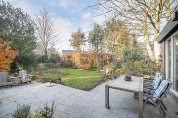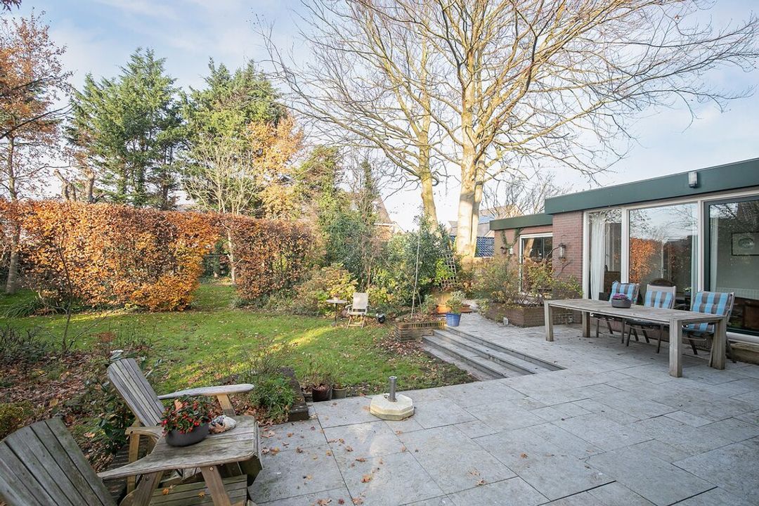 De villa wordt rondom omsloten door de royale tuin. Het hoofdgedeelte van de (achter)tuin is gelegen op het zuidwesten. Hoge en lage, volwassen beplanting, is gecombineerd met een gazon. Door de beplanting, de fruitbomen, de wijnranken en een walnotenboom, is er veel beschutting en privacy. Aan de achterzijde van de villa is er een groot terras waar het heerlijk vertoeven is! De villa is deels voorzien van markiezen, wat het geheel een stijlvolle uitstraling geeft.