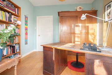 Slaapkamer 4: Gelegen aan de voorzijde met openslaande deuren naar het balkon aan de voorzijde. Een mooie en sfeervolle ruimte en nu in gebruik als werkkamer.