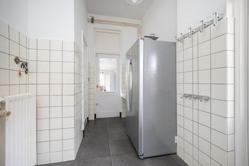 De bijkeuken is een praktische ruimte met extra bergkast en wateraansluiting. Vanuit de bijkeuken is er toegang tot de kelder en complete zijvleugel (woon- slaapkamer, keuken en badkamer).
