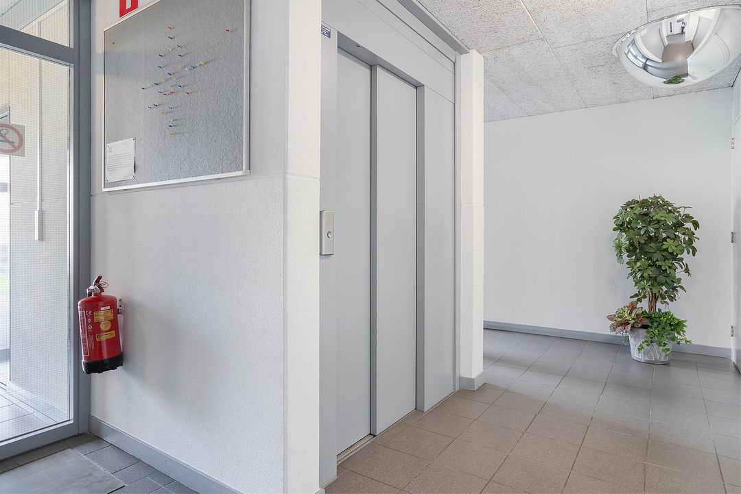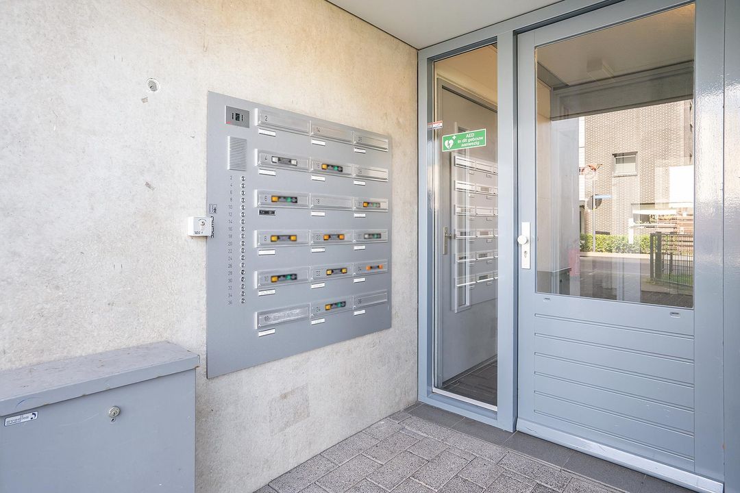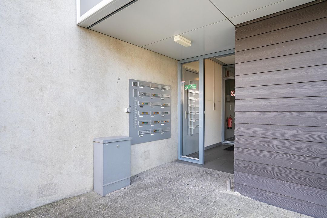 Aan de voorzijde van het complex heeft u de parkeerplaatsen met uw eigen parkeerplek. Het complex heeft een centrale entree met bellentableau. Bij binnenkomst heeft u toegang tot de bergingen, de brievenbussen, het trappenhuis en de liftinstallatie. Daarnaast zijn de berging ook via buiten te bereiken.