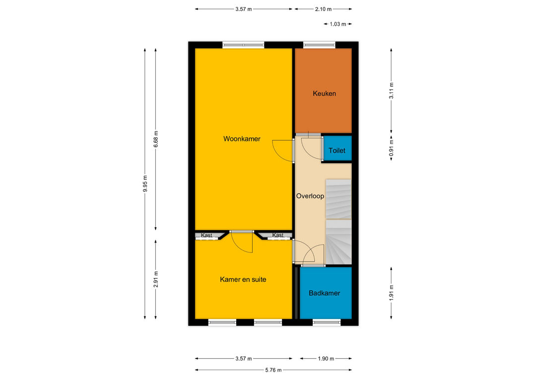 – Dubbele bovenwoning met 103m2 woonoppervlakte