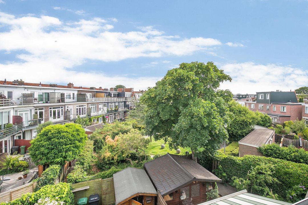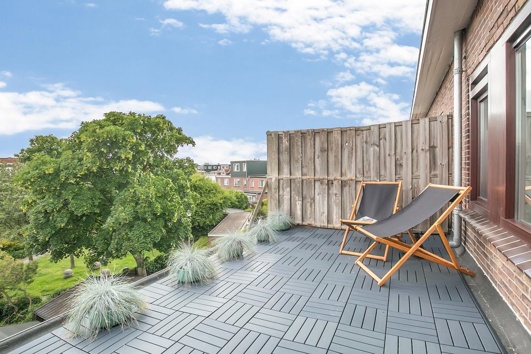 Via slaapkamer 1 heeft u toegang tot het heerlijke dakterras op het zuiden. De licht afwerking op het plafond en de aanwezige grote raampartijen maken dat deze kamer bijzonder prettig wordt belicht. Op het dakterras (17m2) is het echt genieten geblazen! Hier kunt u met een fenomenaal uitzicht uitkijken over de karakteristieke en groenrijke woonwijk.