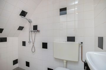 De badkamer is volledig betegeld en heeft ‘Granito’ vloer. Er is een staand toilet, een wastafel en een douche aanwezig. Het sta-vlak van de douche is wat dieper gelegen waardoor het water altijd netjes wordt afgevoerd. U kunt de ruimte eenvoudig ventileren middels het mechanische ventilatiesysteem.