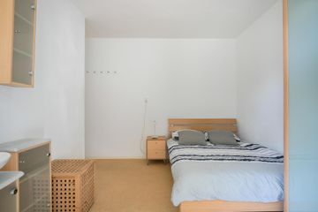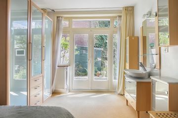 De masterbedroom is ruim van opzet en heeft 2 openslaande deuren naar de tuin en een extra wastafel. Ook de 2e kamer is een volwaardige slaapkamer en heeft 2 grote openslaande ramen richting de tuin. Daarnaast bevindt zich hier ook de cv-installatie (Remeha 2018). Beide slaapkamers hebben een lichte vinylvloer en een witte afwerking op zowel de wanden als het plafond.