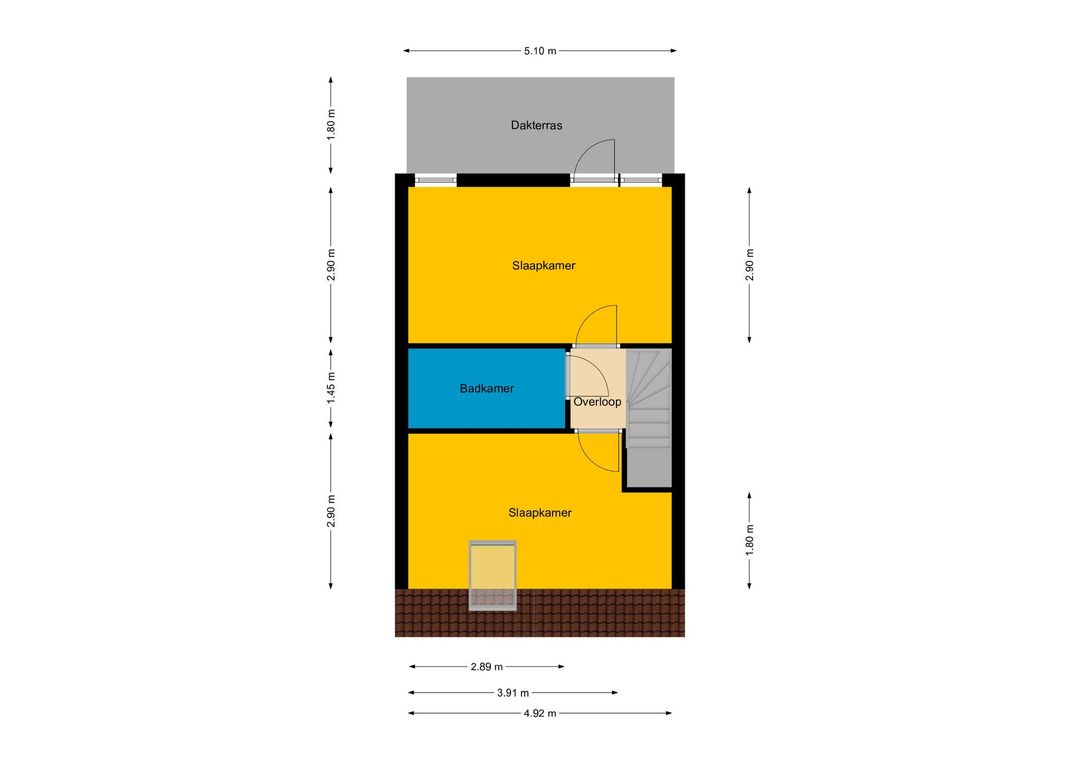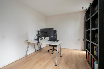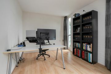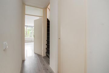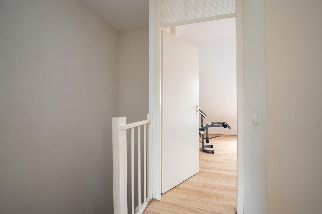 Middels de vaste trap op de begane grond betreedt u de overloop op de eerste verdieping. Vanuit de overloop heeft u toegang tot de 2 slaapkamers en de badkamer. De lichteiken laminaatvloer is hier doorgelegd over de gehele verdieping met uitzondering van de badkamer. Zowel de wanden als het plafond zijn strak afgewerkt met wit schilderwerk.