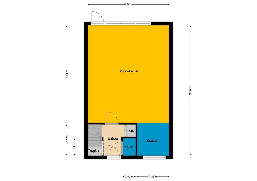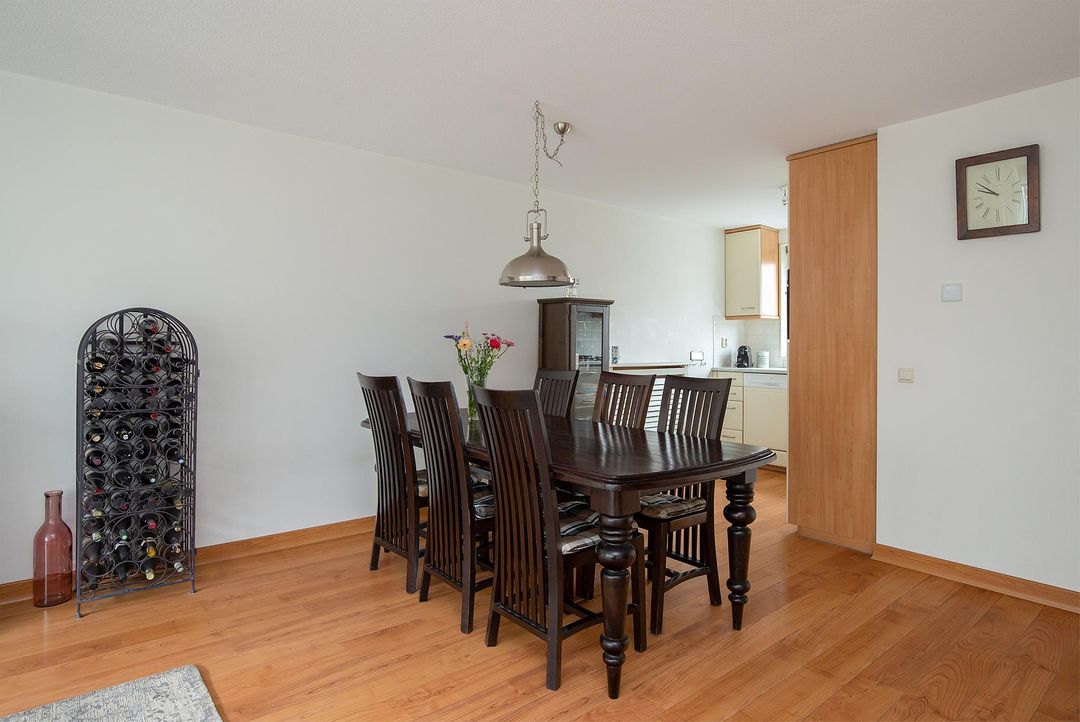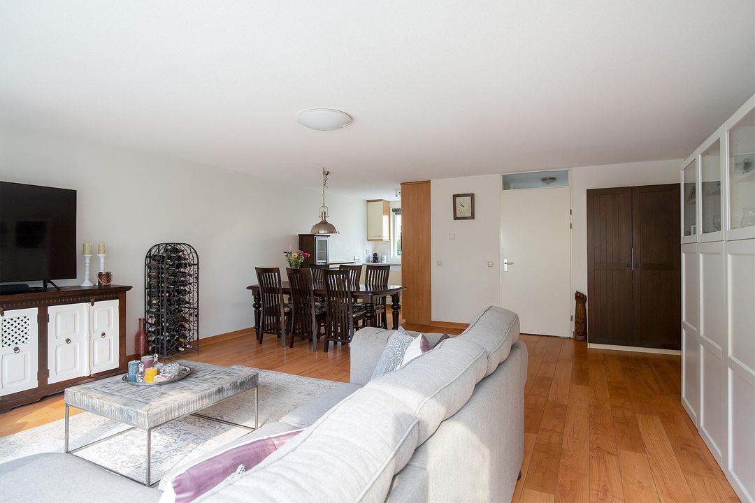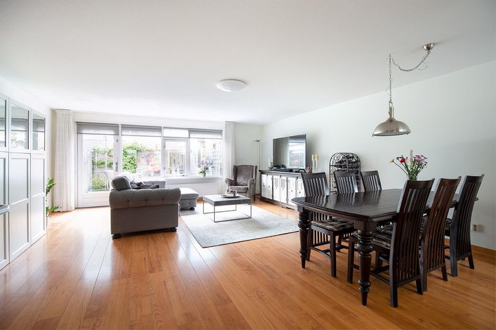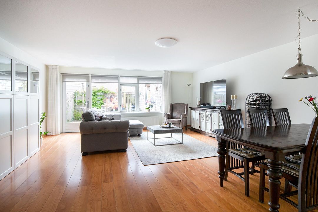 Aan ruimte geen gebrek in deze verrassend ruime woonkamer! Daarnaast heeft u voldoende lichtinval doordat er raampartijen over de gehele breedte van de gevel aanwezig zijn en er is een loopdeur naar de tuin. De woonkamer biedt tevens toegang naar de open keuken en is afgewerkt met strak wit stucwerk op zowel de wanden als het plafond.