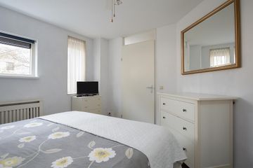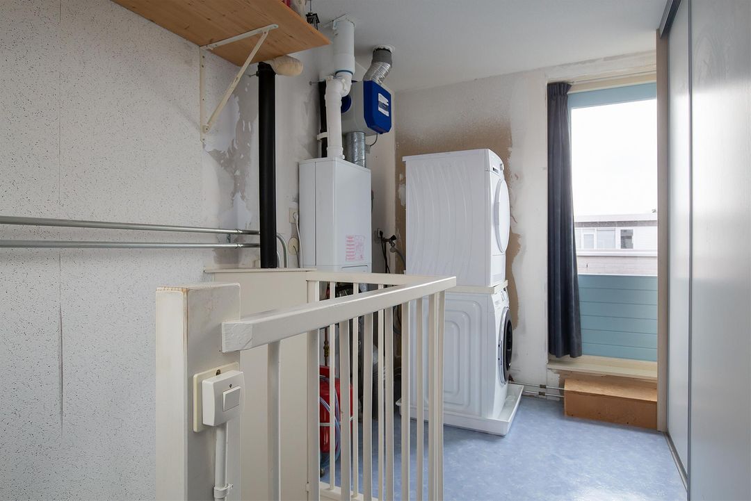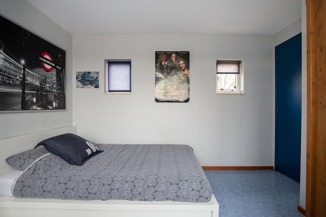 Middels de vaste trap op de eerste verdieping betreedt u de overloop op de 2e verdieping. De overloop is ruim van opzet en biedt plaats voor de was- en droogcombinatie, de CV Ketel (Intergas 2021) en het heeft een ruime inbouwkast. Daarnaast heeft u middels de overloop toegang tot de 3e slaapkamer en het royale dakterras (c.a. 17 m2) op het zuidoosten. De lichtblauwe vinylvloer loopt vanuit hier door over de gehele verdieping. De 3e slaapkamer is ruim van opzet en heeft raampartijen over de gehele breedte van de kamer, incl, een openslaand raam. De wanden van de kamer zijn evenals het plafond afgewerkt met strak wit schilderwerk.