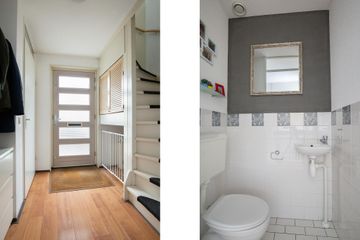 Middels de voordeur betreedt u de ontvangsthal van de woning. Deze ruimte heeft een prettige lichtinval door de glazen panelen in de voordeur. De ontvangsthal biedt toegang tot de meterkast, het toilet, de woonkamer en de vaste trap naar de eerste verdieping met de daarbij horende trapkast. De eikenhouten laminaatvloer is vanuit hier volledig doorgelegd over de begane grond m.u.v. het toilet. Daarnaast zijn de zowel de wanden als het plafond afgewerkt met strak wit schilderwerk.