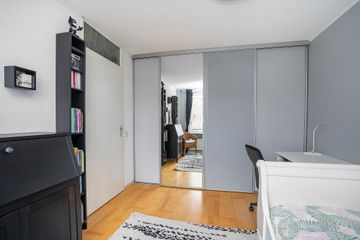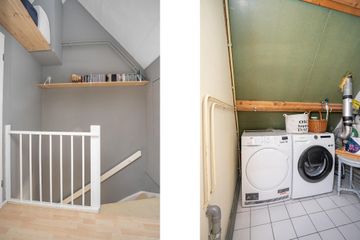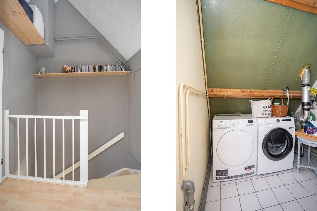 De overloop van de tweede verdieping heeft een praktische en hele diepe bergruimte, een wasruimte met aansluiting voor de wasmachine, droger en CV-ketel(Remeha Tzerra 2016) en een derde ruime slaapkamer. Deze slaapkamer heeft een groot dakraam, hoge knieschotten, een laminaatvloer en een fonteintje met zowel warm als koud water.