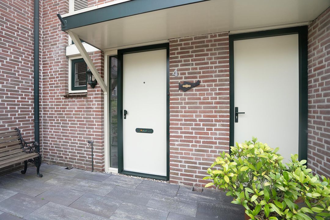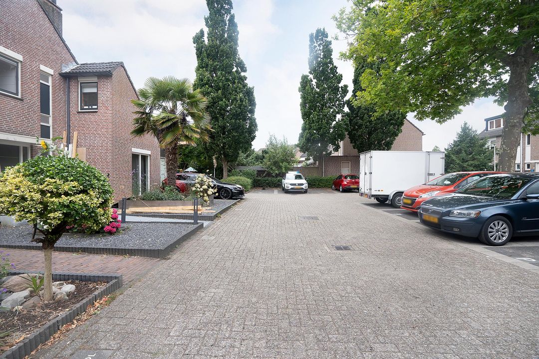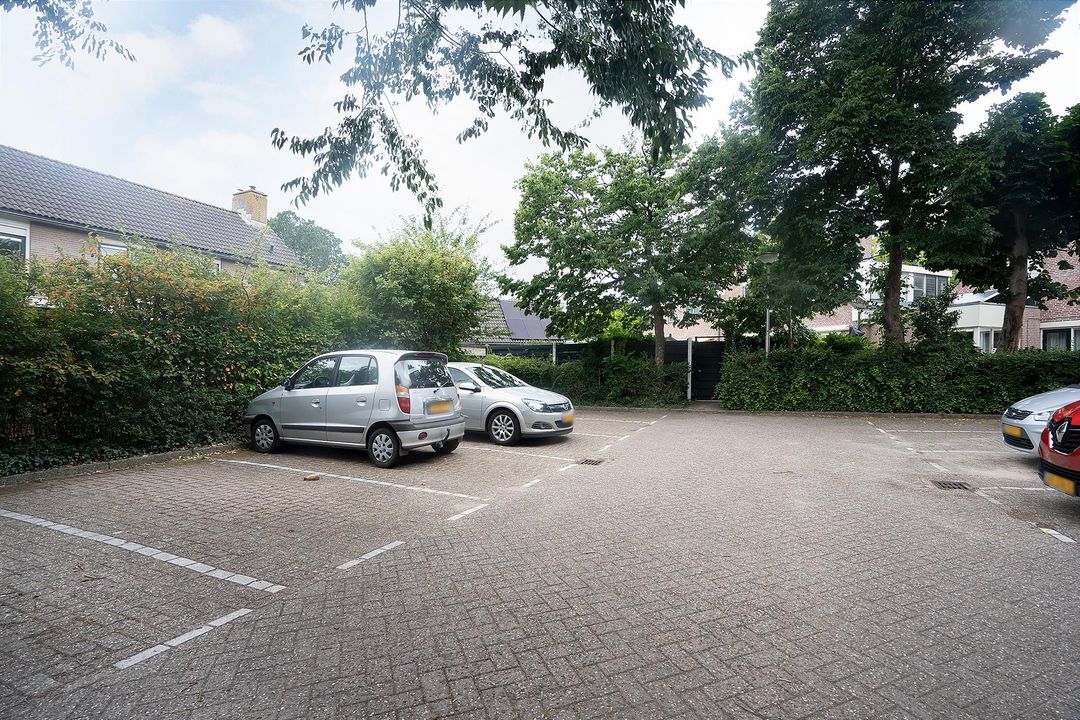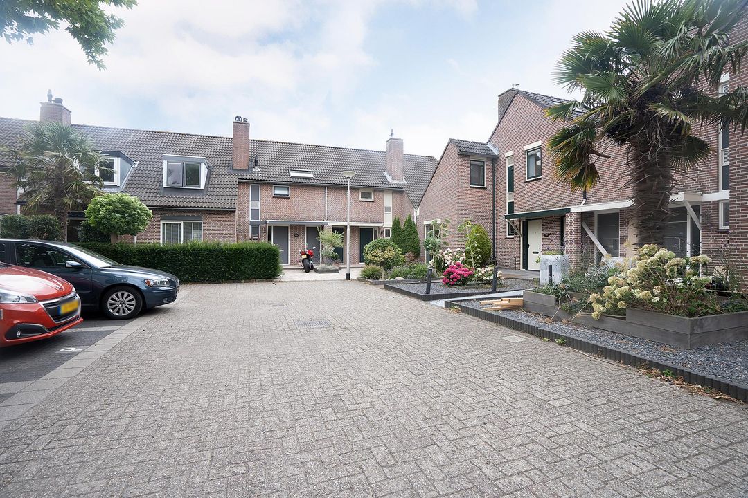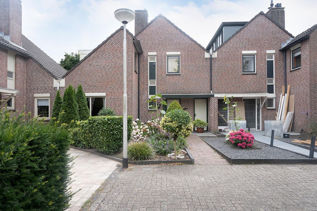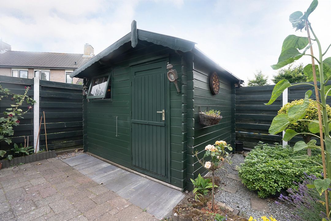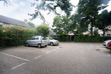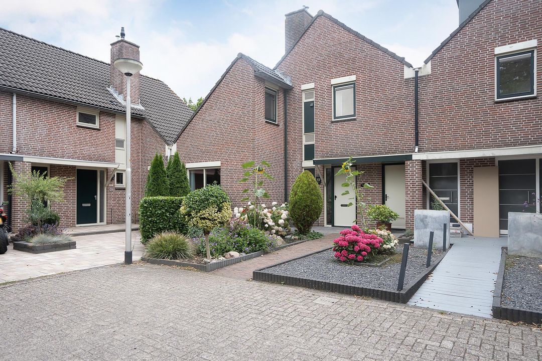 De woning is gelegen in een autoluwe straat met openbare parkeerplaatsen voor de deur. De voortuin heeft een bestraat pad naar de voordeur en de berging, met aan weerszijde plantenborders met zowel hoge als lage beplanting.