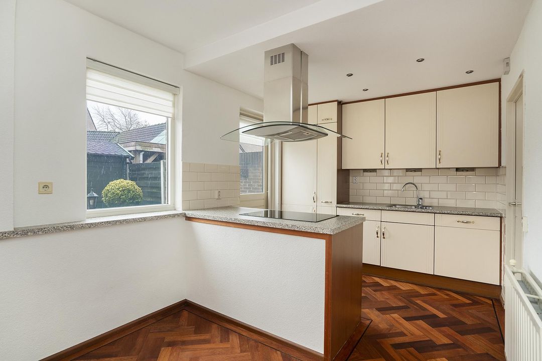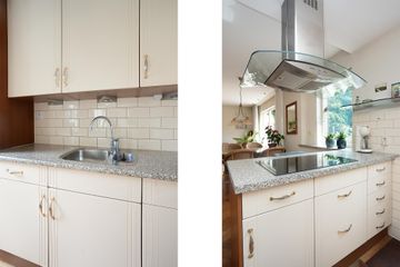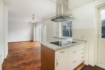 De open keuken is gesitueerd aan de achterzijde van de woning en wordt perfect belicht door de grote aanwezige raampartijen. De keuken heeft een rechte opstelling tegen de achterwand en een extra kookblok. Hierdoor heeft u meer dan voldoende werk- en opbergruimte. Rechte opstelling heeft een 1 ½ rvs-spoelbak en verschillende inbouwapparatuur. Zo zijn een vaatwasser, een koelkast en een vriezer allemaal aanwezig. Het kookblok heeft een inductiekookplaat met rvs-afzuigkap erboven en veel opbergruimte in de kasten eronder.