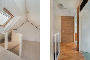 Middels de vaste trap op de begane grond betreedt u de overloop op de eerste verdieping. Vanuit hier heeft u toegang tot de 3 slaapkamers, de badkamer, een bergkast met cv-installatie , en de vaste trap naar de 2e verdieping. Er ligt een nette laminaatvloer op de overloop en aan de wanden is gekozen voor sierlijke houtschotten.