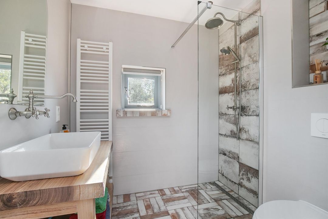 Ook de badkamer heeft een zeer fraaie afwerking! De ruimte heeft een combinatie van lichtgrijze wandtegels en siertegels op de vloer. De achterwand van de ruime inloopdouche en het vensterbank is in dezelfde style afgewerkt als deze vloertegels wat een ontzettend gaaf aanzicht geeft! Daarnaast heeft de badkamer een badkamermeubel met spoelkom, een designradiator, een hangend toilet en verschillende inbouwspots in het plafond. U kunt de ruimte snel en eenvoudig ventileren middels het mechanische ventilatiesysteem en/of het openslaande raam die de ruimte tevens van daglicht voorziet.