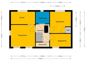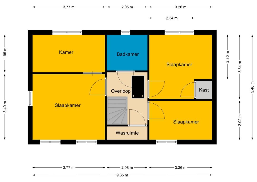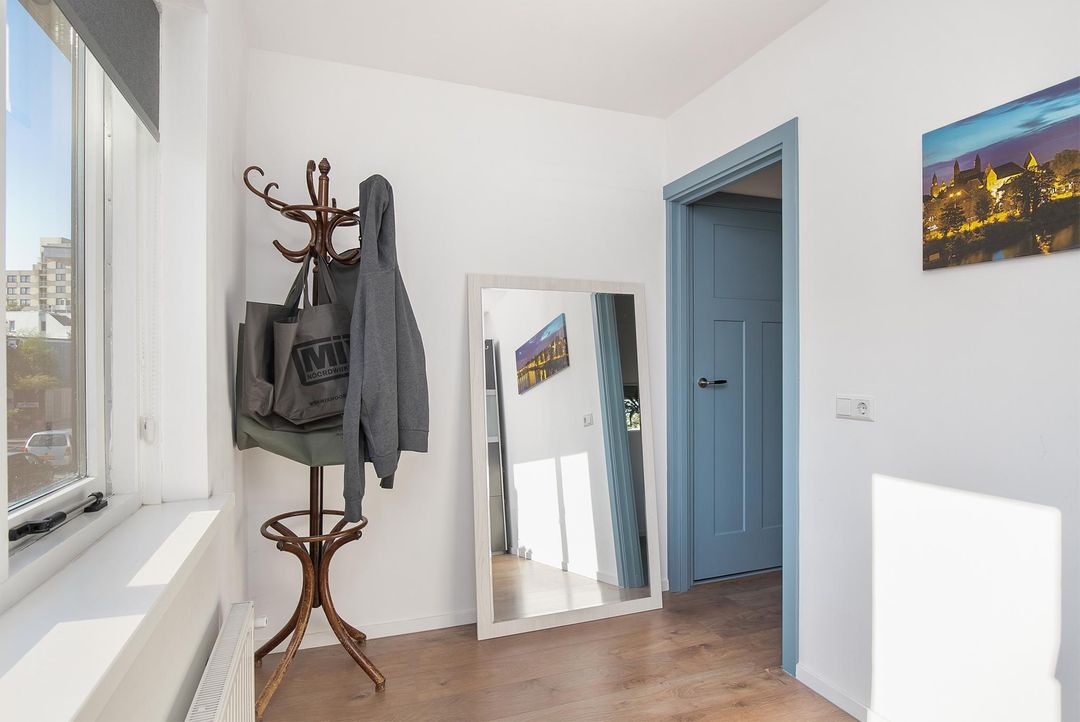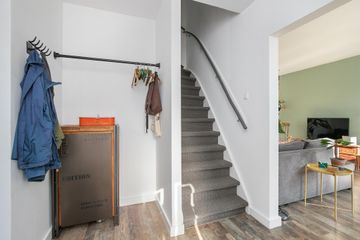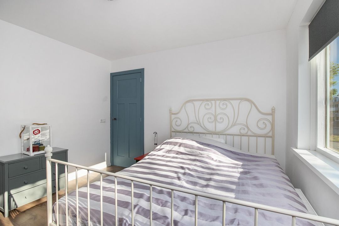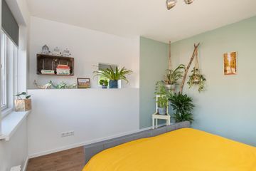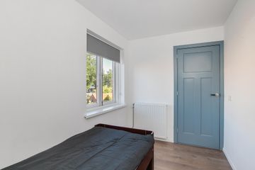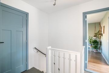 Via de vaste trap op de begane grond betreedt u de nette overloop op de eerste verdieping. Vanuit hier heeft u toegang tot de 3 slaapkamers ,de badkamer en de bergzolder. De overloop heeft een donkergrijs vloertapijt en strak gestucte wanden/plafond met een witte afwerking. Leuk detail zijn de blauwgekleurde deuren die er echt uitspringen!
