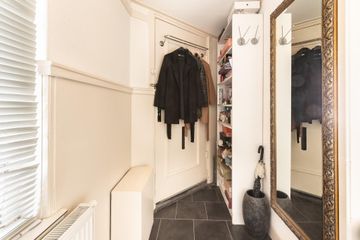 De woonkamer wordt zeer goed belicht door de grote raampartij aan de voorzijde en het openslaande raam aan de zijkant van de woning. Daarnaast heeft de woonkamer een inbouwkast waar u uw garderobe in kunt maken en extra bergruimte boven de hal.