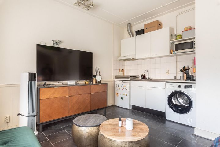 Bij binnenkomst betreedt u de entree met toegang tot de woonkamer, de cv-kast (Intergas 2015) met wasmachine aansluiting en de badkamer. De antracietkleurige laminaatvloer is vanuit hier geheel doorgelegd over de gehele woning, m.u.v. de badkamer. Zowel de wanden als het plafond zijn afgewerkt met wit schilderwerk.