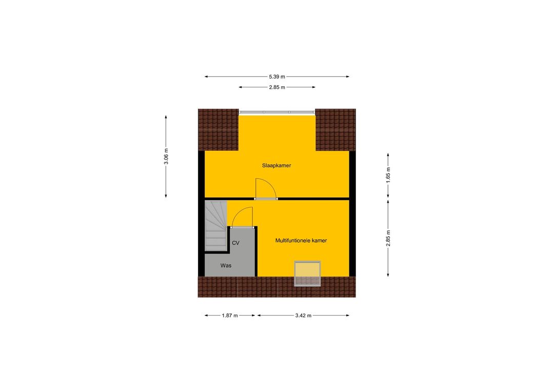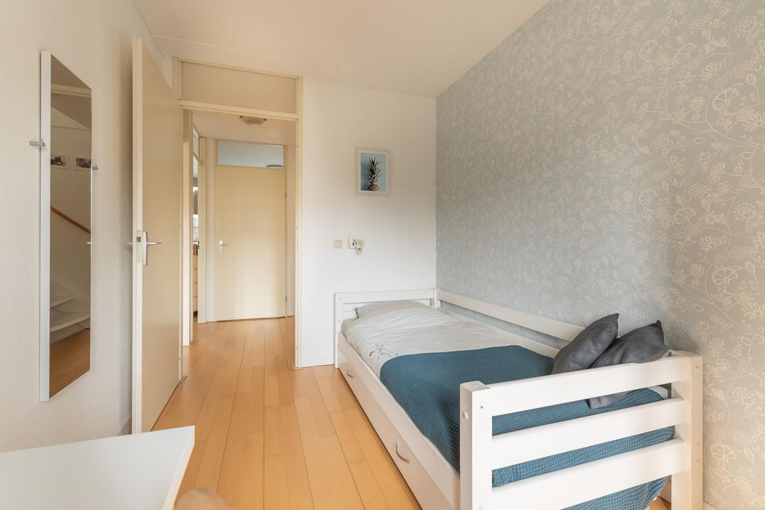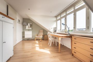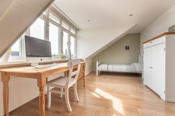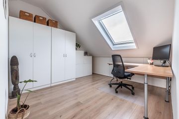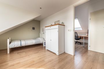 Vanaf de 1e verdieping is er de vaste trap naar de zolderverdieping. Hier heb je onverwachts veel ruimte! Er is een ‘open kamer’ die gebruikt kan worden voor bijvoorbeeld een extra werkplek. Deze ruimte heeft een dakraam en knieschotten voor extra bergruimte. De 4e slaapkamer bevindt zich aan de achterzijde van de woning. De dakkapel maakt van deze kamer een volwaardige slaapkamer. Als extra is hier een wastafel. De gehele verdieping is netjes afgewerkt met lichte wanden en een laminaatvloer. Tevens is hier de CV-installatie geplaatst (Intergas 2013)