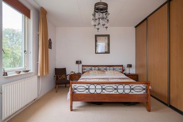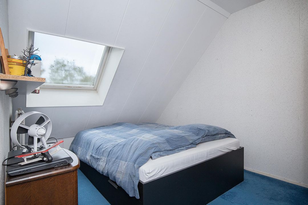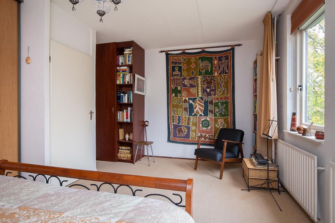 De eerste slaapkamer is ruim van opzet doordat dit voorheen 2 kamers zijn geweest. De kamer heeft hierdoor 2 grote raampartijen en heeft tevens een zeer ruime inbouwkast. Waar de vloer is afgewerkt met beigekleurig vloertapijt, zijn zowel de wanden als het plafond afgewerkt met net wit schilderwerk. Ook de 2e slaapkamer heeft een grootraampartij en een witte afwerking op zowel het plafond als aan de wanden. Daarnaast heeft deze kamer een wastafel en is hier de vloer afgewerkt met lichtblauw vloertapijt.