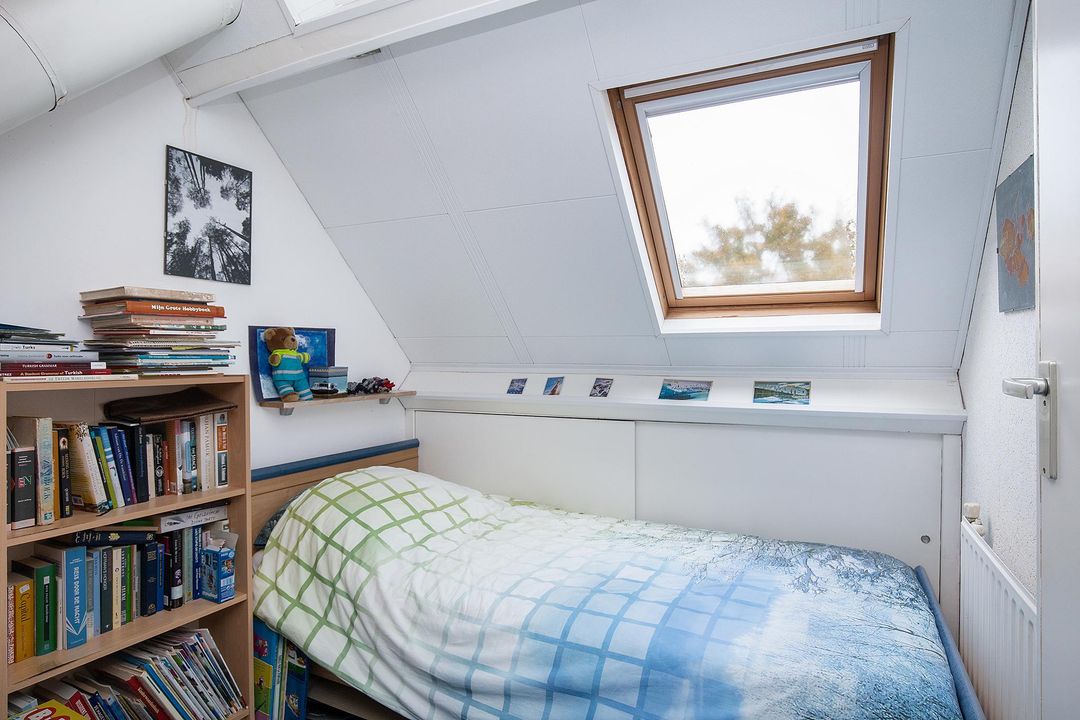 Via de vaste trap betreedt u de overloop op de tweede verdieping met toegang tot de 3 slaapkamers en de wasruimte met cv-installatie (Valliant 2003). De eerste slaapkamer heeft een uitermate goede belichting door de dakkapel met grote ramen. Daarnaast heeft u extra bergruimte in de knieschotten. Slaapkamer 2 en 3 hebben beiden een dakraam en ook heeft de derde slaapkamer een inbouwkast. Alle slaapkamers zijn voorzien van een witte afwerking op de wanden en het plafond en hebben een licht blauw vloertapijt.