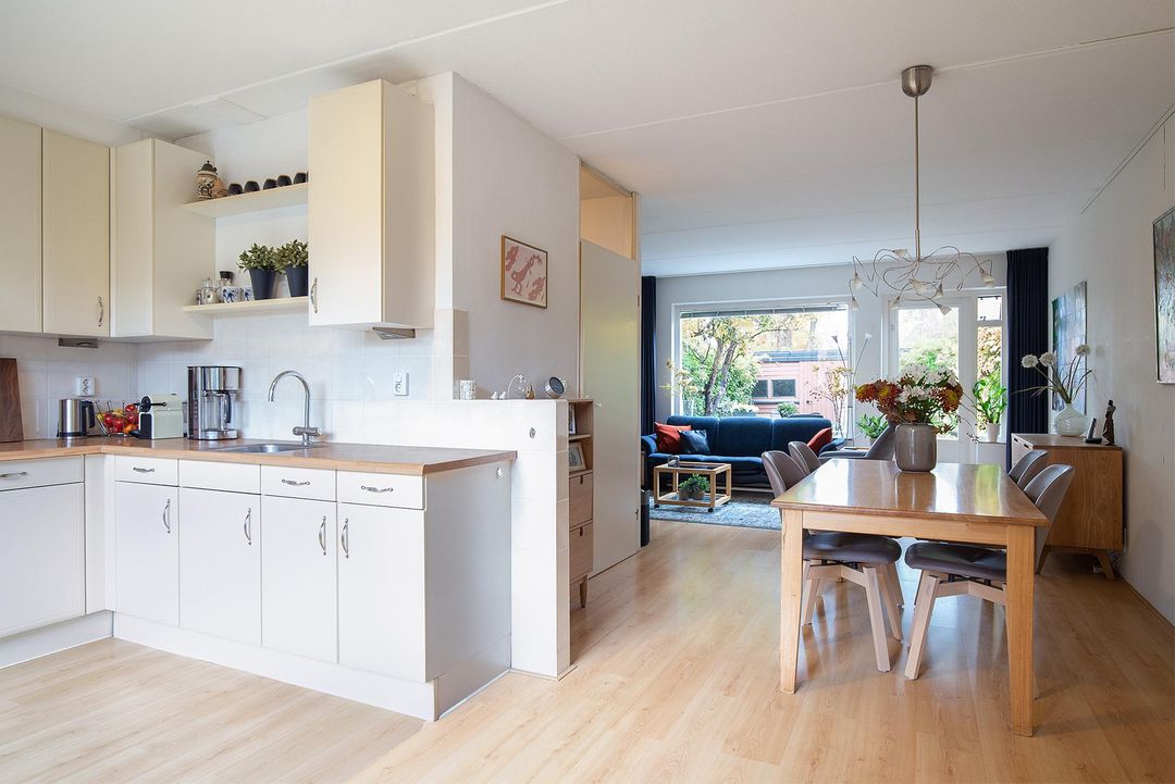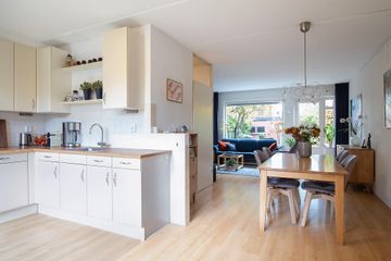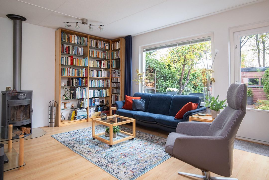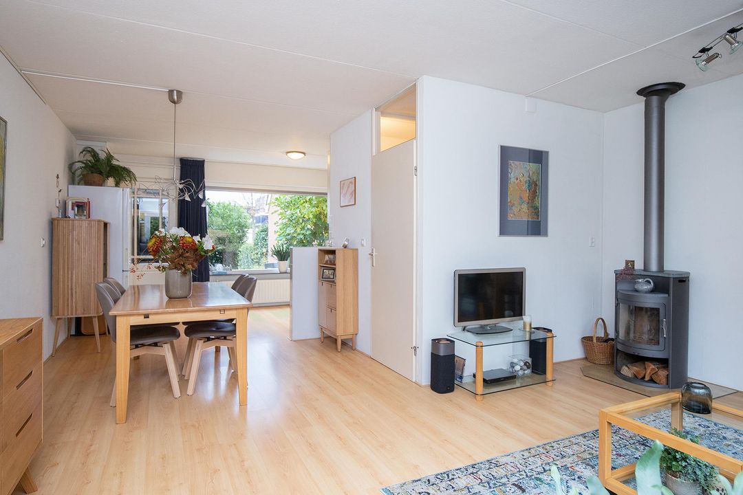 De woonkamer is een regelrechte doorzonkamer en ruim van opzet. De woning heeft aan weerszijde grote raampartijen waardoor de woonkamer perfect belicht wordt! Aan de achterzijde kunt u een gezellige zithoek creëren bij het knusse houtkacheltje. Aan de voorzijde van de woning heeft u de mogelijkheid om een eethoek te creëren bij de doorloop naar de open keuken. Via de woonkamer heeft u toegang naar de achtertuin en heeft u tevens toegang tot de afgesloten hal met de toiletruimte en de trap naar de eerste verdieping.