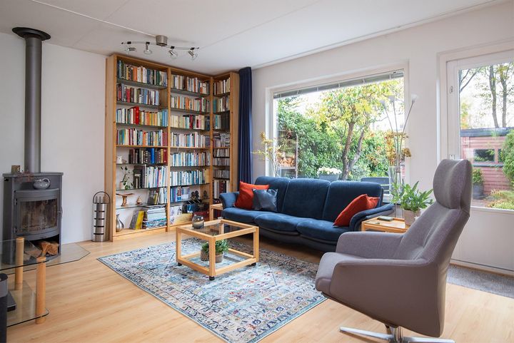 The living room is a straight through room and spacious. The house has large windows on both sides so that the living room is perfectly exposed! At the rear you can create a cozy sitting area by the cozy wood stove. At the front of the house you have the option to create a dining area at the passage to the open kitchen. Through the living room you have access to the backyard and you also have access to the closed hall with the toilet and the stairs to the first floor.