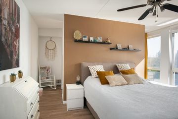 Via de vaste trap op de eerste verdieping betreedt u de overloop op de tweede verdieping met toegang tot de separate toiletruimte, de 2 slaapkamers en wasruimte. Ook hier zijn de grote raampartijen aanwezig en is op deze verdieping de nette laminaatvloer geheel doorgelegd m.u.v. de toiletruimte. De Masterbedroom heeft een royale inloopkast en 3 grote ramen voor een prettige lichtinval. Ook de tweede slaapkamer een 3 grote raampartijen en heeft een riante inbouwkledingkast.