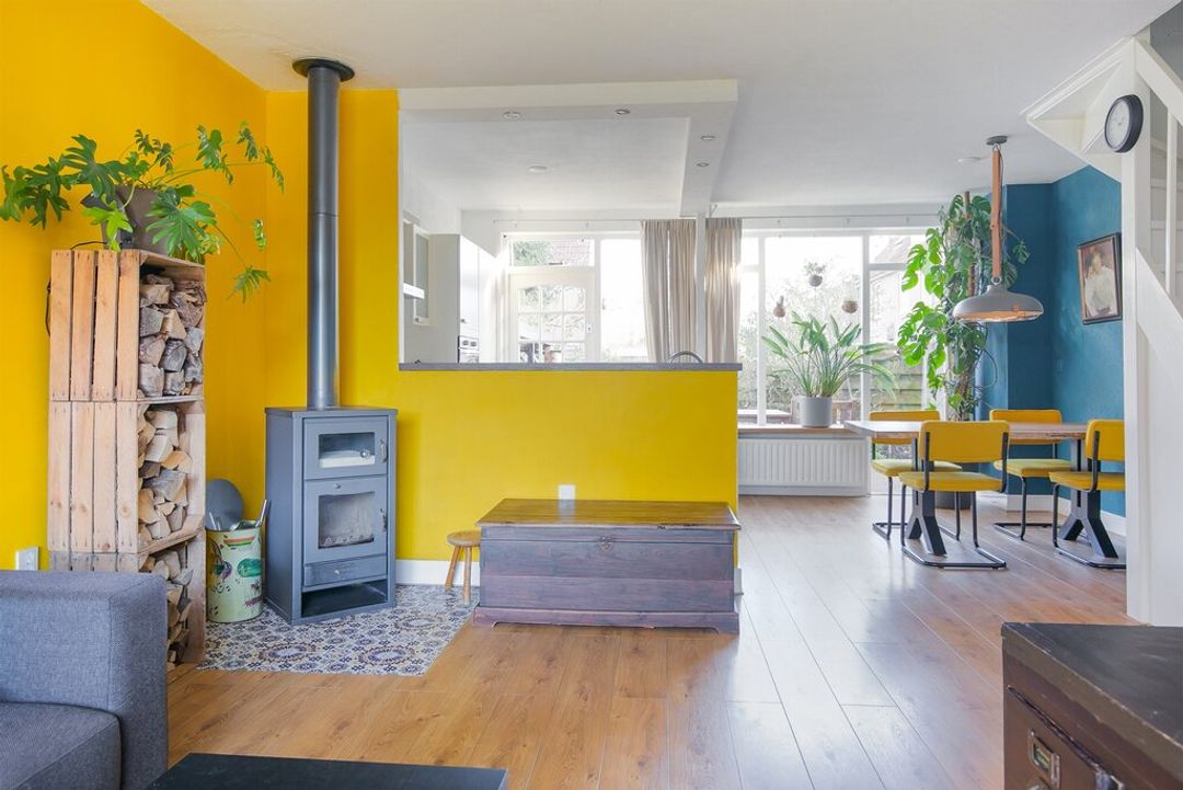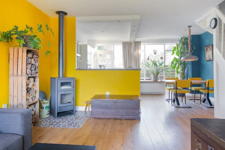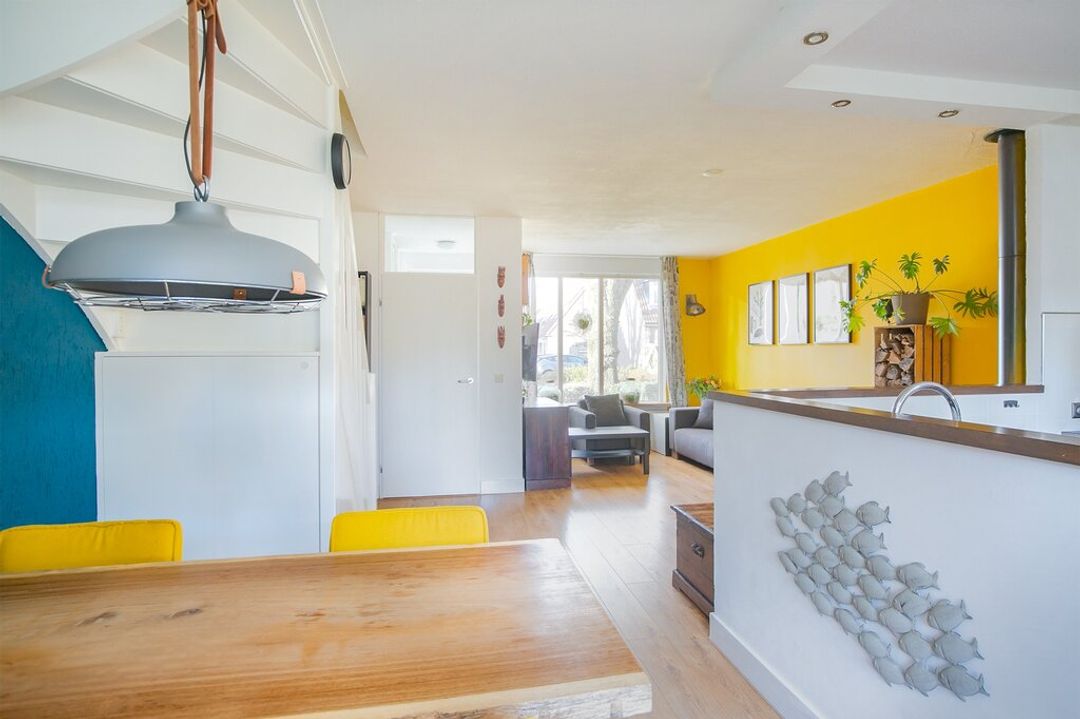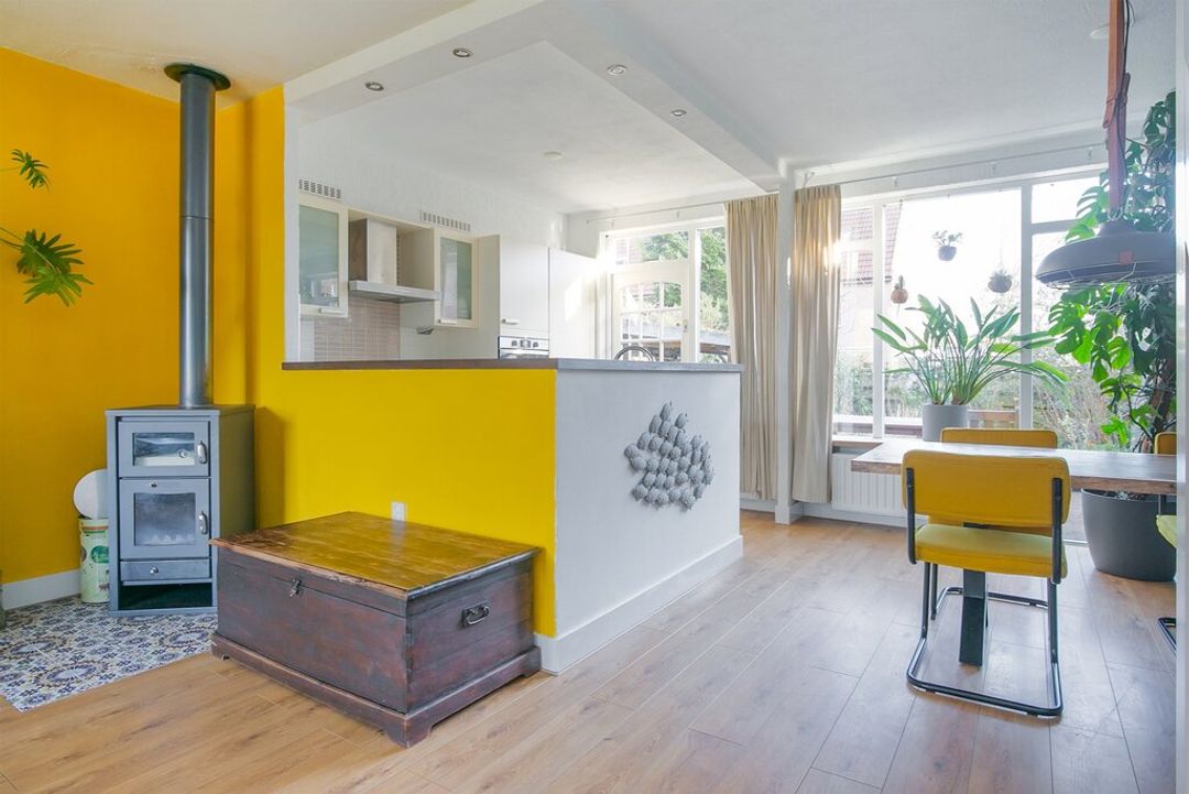 De nette doorzon woonkamer, heeft zowel aan de voor-als achterzijde een grote raampartij. De woonkamer heeft een ruime zithoek aan de voorzijde van woning, de grote raampartijen geven deze zithoek een zeer prettig lichtinval. Tevens geeft de houtkachel erg veel sfeer aan deze hoek. Meer naar de achterzijde van de woning open woonkeuken. Hier is ruim voldoende ruimte voor een eettafel. Door de vele raampartijen op de achtergevel is de lichtinval van deze hoek eveneens erg prettig!