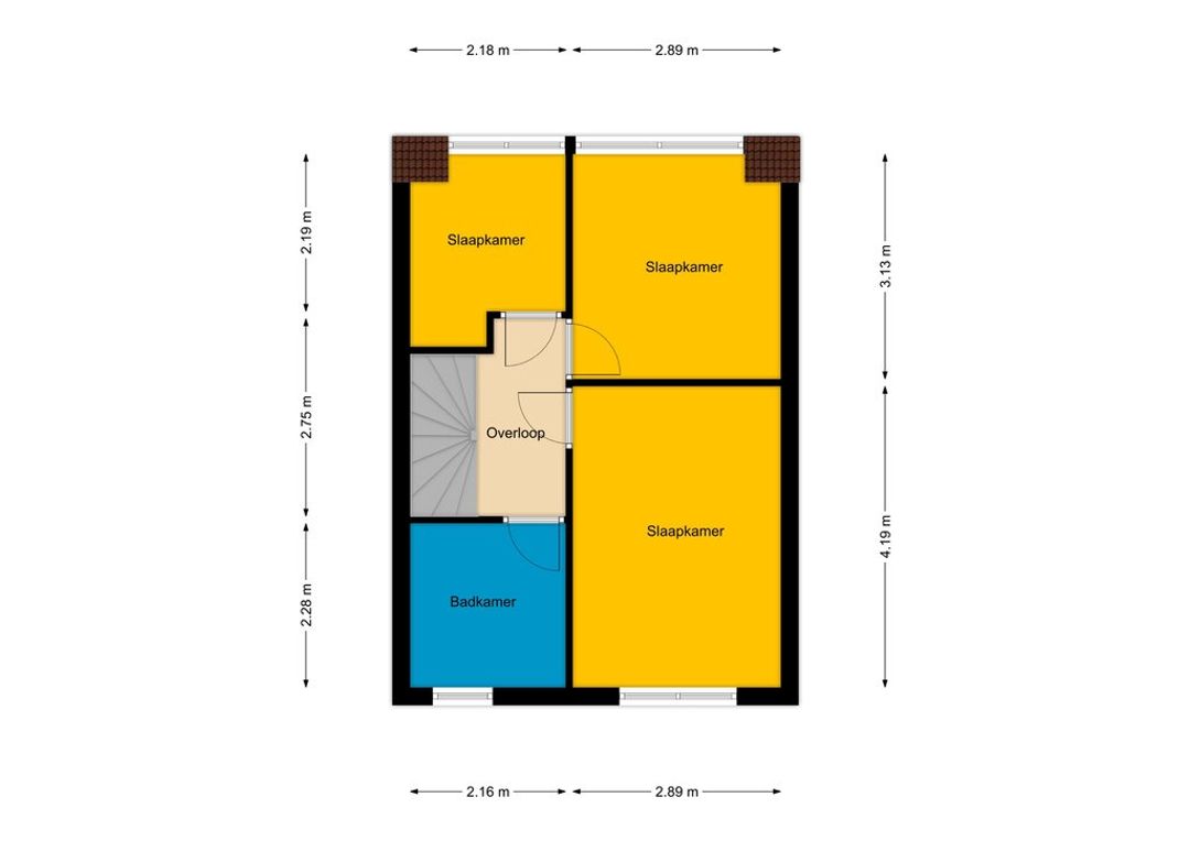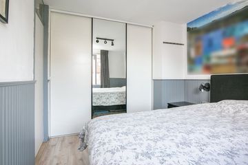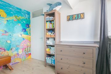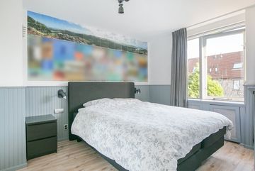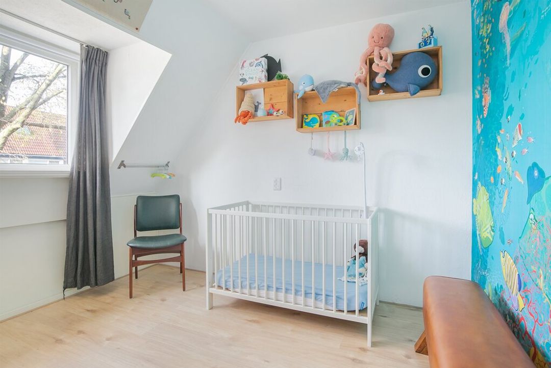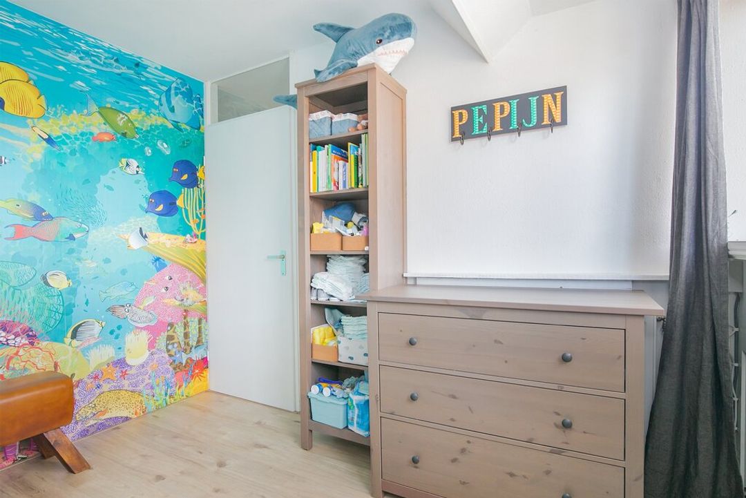 De grote slaapkamer heeft een ruime inbouwkast met hoge schuifdeuren tot het plafond. De kamer is afgewerkt met een blauwgrijze lambrisering en witte wanden. De tweede slaapkamer heeft een witte afwerking op zowel het plafond als op de wanden, eén wand is bekleed met posterbehang. De kamer heeft halfschuin dak voorzien van een dakkapel met openslaand dakraam. De laatste slaapkamer is nagenoeg gelijk aan de tweede slaapkamer.