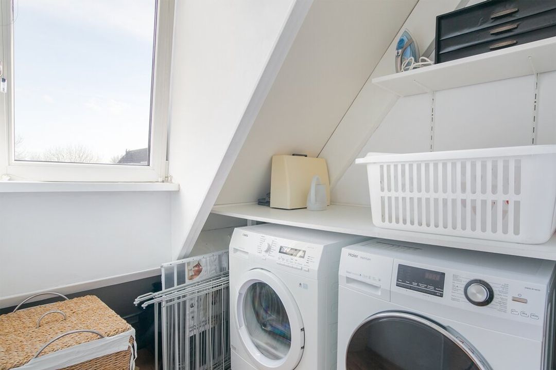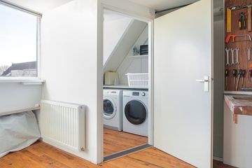 Middels de vaste trap komt u op de tweede verdieping van deze hoekwoning. Deze verdieping heeft een zeer royale zolderkamer en een extra ruimte welke dient als was/droog ruimte. De kamer is afgewerkt met een vuren laminaatvloer en heeft een witte afwerking op de wanden en het plafond. Tevens is deze ruimte voorzien van een vlizotrap naar de bergzolder en heeft u ook hier extra opbergruimte! De tweede verdieping is voorzien van een dakkapel met raampartijen over de gehele breedte van de verdieping.