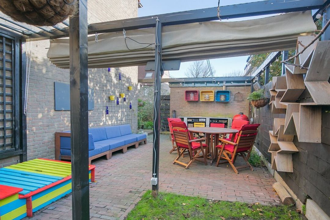 Middels de woonkamer komt royale tuin rondom de woning! De achtertuin gelegen op het op zuid-oosten en biedt tevens doorgang naar de tuin aan de zijkant van de woning. De zijtuin is gelegen op het zuid-westen, hier kun je de gehele dag genieten van de zon! De tuin is grotendeels betegeld en er is tevens veel groen aangelegd, waarvan veel vaste beplanting. De tuin is voorzien van een stenen berging voorzien van elektra.