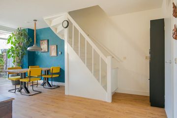 Middels de vaste trap vanuit de woonkamer, komt u op de overloop van de eerste verdieping. Deze is afgewerkt met een licht eiken laminaatvloer welke is doorgelegd over de gehele verdieping. De overloop biedt doorgang naar 3 slaapkamers, de badkamer en de vaste trap naar de 2e verdieping.