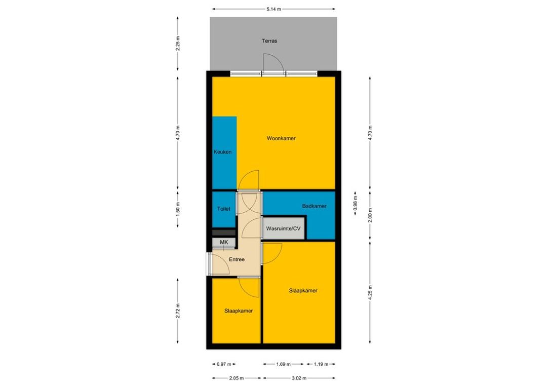 Vanuit te woonkamer heeft u toegang tot uw eigen terras (12 m2). Hier kunt u heerlijk van de zon genieten doordat het is gelegen op het zuidwesten!