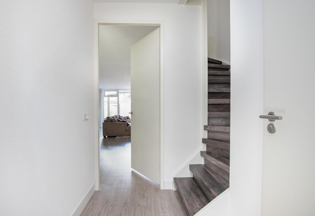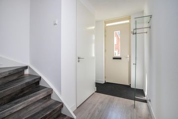 Middels de voordeur betreedt u de ontvangsthal met toegang tot de (pvc) trap naar de eerste verdieping, de meterkast, de woonkamer en de toiletruimte. Waar de wanden en het plafond zijn afgewerkt met strak wit schilderwerk, is de zeer nette pvc-vloer is doorgelegd over de gehele verdieping m.u.v. de toiletruimte.