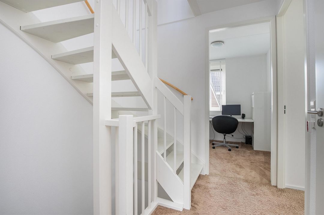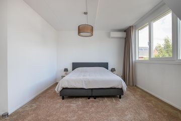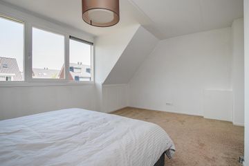 Via de vaste trap op de begane grond betreedt u de overloop op de eerste verdieping. Vanuit hier heeft u toegang tot de 3 slaapkamers, de badkamer en de trap naar de tweede verdieping. De zandkleurige vloertapijt is doorgelegd over de gehele verdieping m.u.v. de badkamer. Alle wanden zijn voorzien van strak vliesbehang. Slaapkamer 1 heeft een dakkapel en wordt hierdoor zeer goed belicht. Slaapkamer 2 en 3 hebben beide een groot openslaand slaan, met een extra raampartij in de 3e slaapkamer.