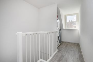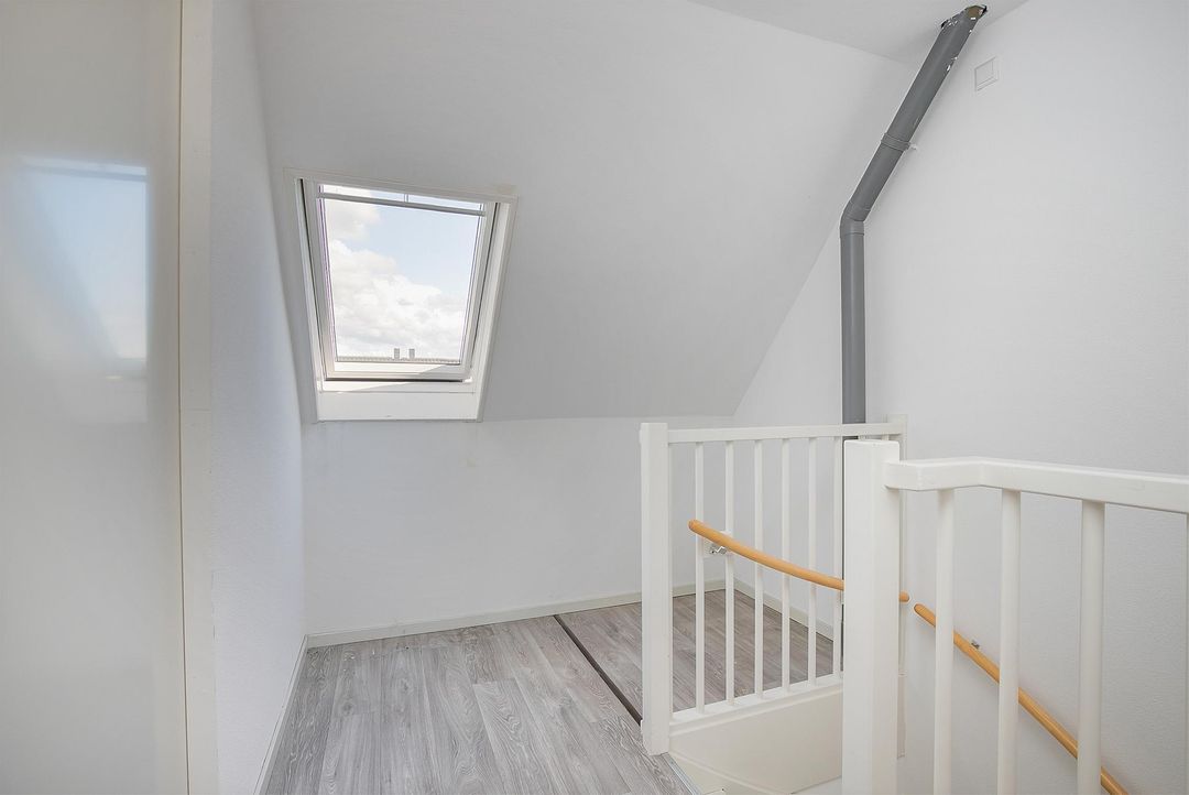 De open trap naar de eerste verdieping komt uit op de ruime voorzolder op de tweede verdieping. Ook in deze ruimte heeft u aan licht geen gebrek doordat er een dakraam aanwezig is. Op de voorzolder treft u de tevens de aansluiting voor uw was-en droogcombinatie, de cv-ketel (Intergas 2014), de zonneboiler en het mechanische ventilatiesysteem. Daarnaast heeft u toegang tot de 4e royale slaapkamer en is de bergzolder te bereiken middels de vlizotrap. De gehele verdieping is afgewerkt met een lichtgrijze laminaatvloer een heeft een nette witte afwerking op zowel het plafond als op de wanden.
