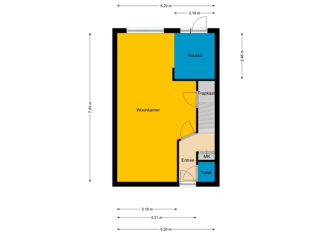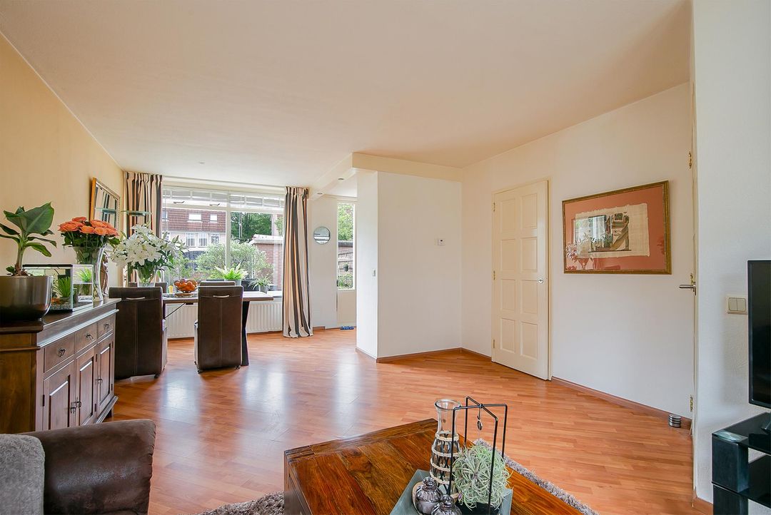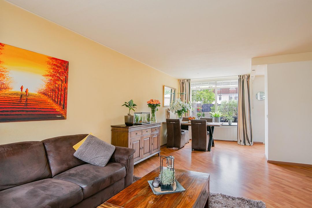 De woonkamer is verrassend ruim en licht! U heeft voldoende ruimte om een zithoek te creëren aan de voorzijde van de woning, met een eetgedeelte aan de achterzijde bij de doorloop naar de open keuken. Doordat er zowel aan de voor- als achterzijde van de woning is gekozen voor grote raampartijen heeft u aan licht absoluut geen gebrek! Daarnaast heeft u extra opbergruimte in de ruime trapkast en zijn zowel de wanden als het plafond afgewerkt met licht schilderwerk.