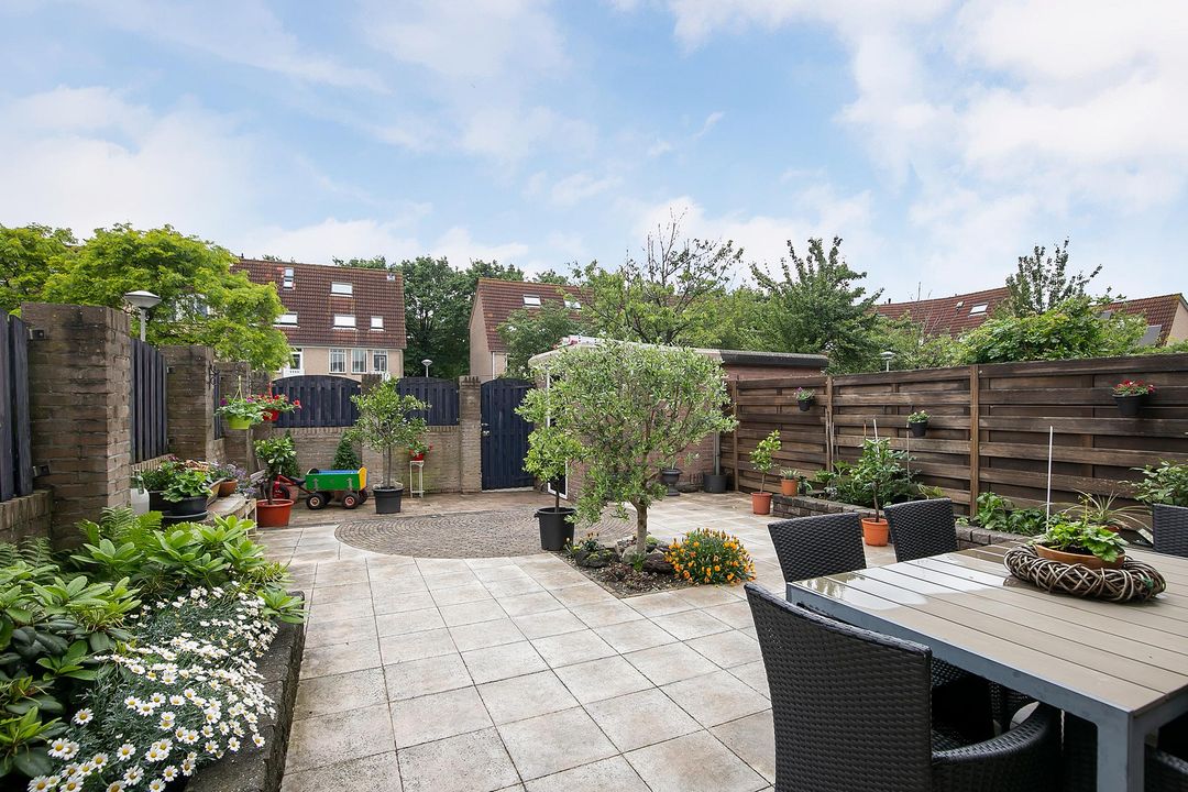 Vanuit de keuken loopt u deze heerlijk ruime (75m2) op het zonnige westen in. De tuin is onderhoudsvriendelijk doordat het, op een aantal plantenborders na, geheel bestraat is. Daarnaast heeft u maar liefst 2 stenen bergingen met elektra. Zo heeft u er 1 aan de achterzijde van de tuin (5m2), en heeft u er 1 aan de zijkant van de woning (6,2m2) waar u onder andere uw fietsen in kwijt kunt. Middels de achterom komt u uit bij een grasveldje en extra parkeergelegenheid.