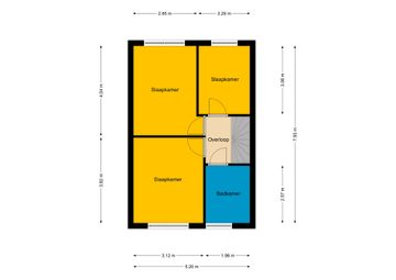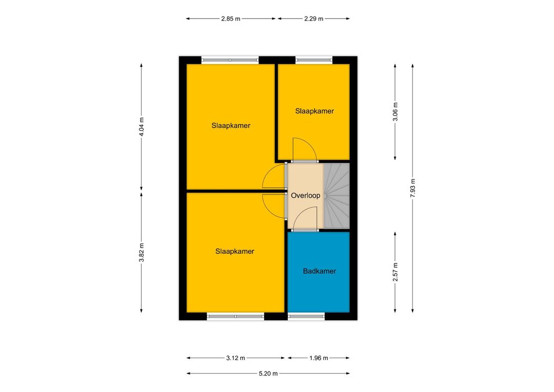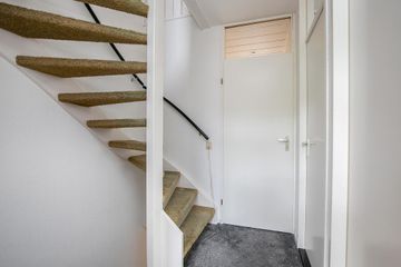 Middels de vaste trap op de begane grond betreedt u de overloop op de eerste verdieping. Vanuit hier heeft u toegang tot de 3 slaapkamers, de badkamer en de vaste trap naar de tweede verdieping. De vloer heeft een lichtgrijs tapijt, de wanden zijn afgewerkt met net wit schilderwerk en het plafond is strak wit gestukt.