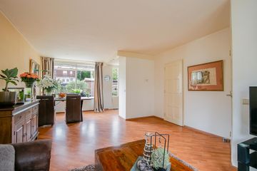 Vanuit de volledig bestraatte voortuin betreedt u middels de voordeur de ontvangsthal. Vanuit hier heeft u toegang tot de meterkast, de trap naar de eerste verdieping, de woonkamer en het toilet. De nette laminaatvloer is vanuit hier geheel doorgelegd over de begane grond m.u.v. van de toiletruimte. Zowel het plafond als de wanden zijn afgewerkt met wit schilderwerk.