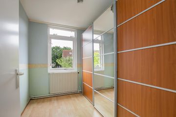De eerste 2 slaapkamers hebben een antracietkleurige tapijtvloer en zijn beide voorzien van 2 grote raampartijen. De slaapkamer aan de voorzijde van de woning heeft een verhuisraam wat volledig open kan! Beide kamers zijn afgewerkt met strak wit schilderwerk aan de wanden en op het plafond. De 3e slaapkamer heeft een openslaand raam en is nu ingericht als kledingkamer. De kamer is groot genoeg om te voldoen als slaapkamer of bijvoorbeeld kantoorruimte. Deze kamer heeft een licht eiken laminaatvloer en lichtblauw behang in combinatie met lichtgroen.
