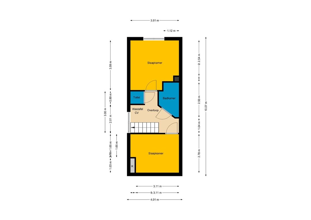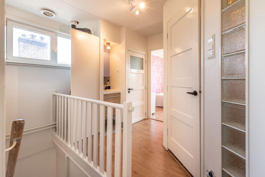 Middels de vaste trap op de eerste verdieping, betreedt u de overloop op de 2e verdieping. Vanuit hier heeft u toegang tot de 2 slaapkamers, de badkamer en het tweede toilet. De lichteiken laminaatvloer is vanuit hier doorgelegd over de gehele verdieping m.u.v. de badkamer en het toilet. Naast de toiletruimte is er op de overloop een wastafel geplaatst. Hiernaast is een netjes weggewerkte Nefit cv-installatie.