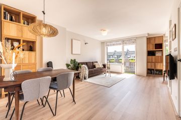Middels de voordeur betreedt u de ontvangsthal met toegang tot de woonkamer, de keuken, een praktische wasruimte, een gang/bergkast, de meterkast en een toiletruimte met fonteintje. Vanuit de hal is een lichte laminaatvloer netjes doorgelegd naar de woon- en eetkamer.