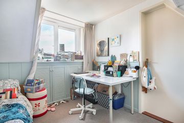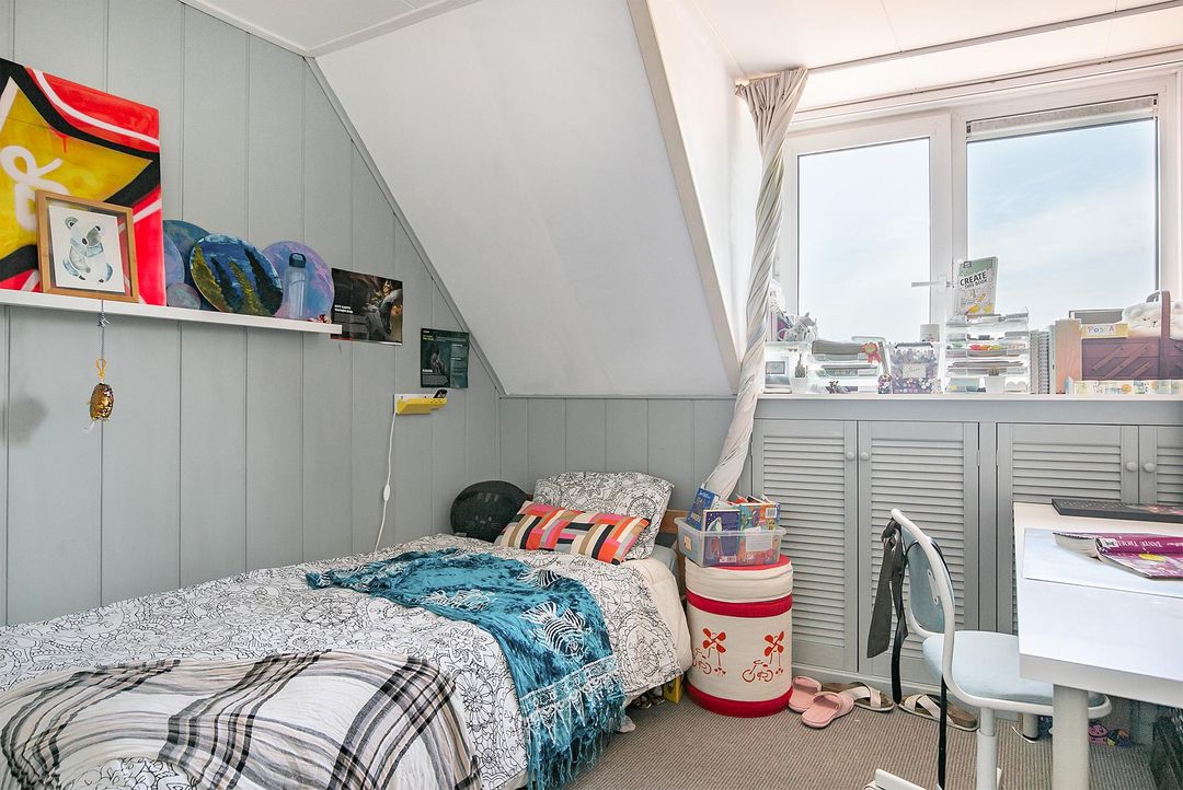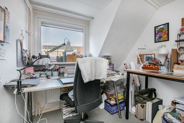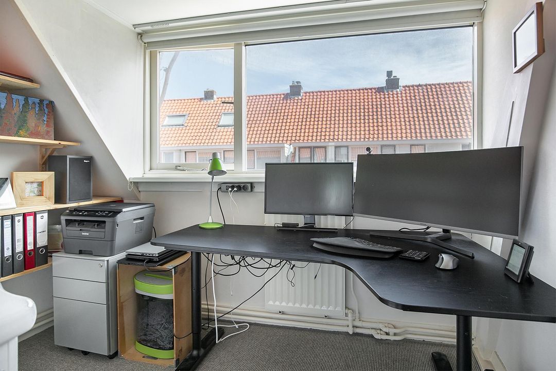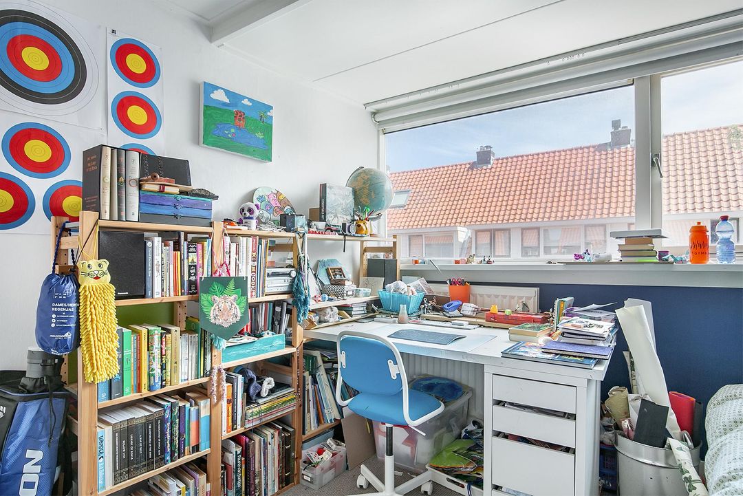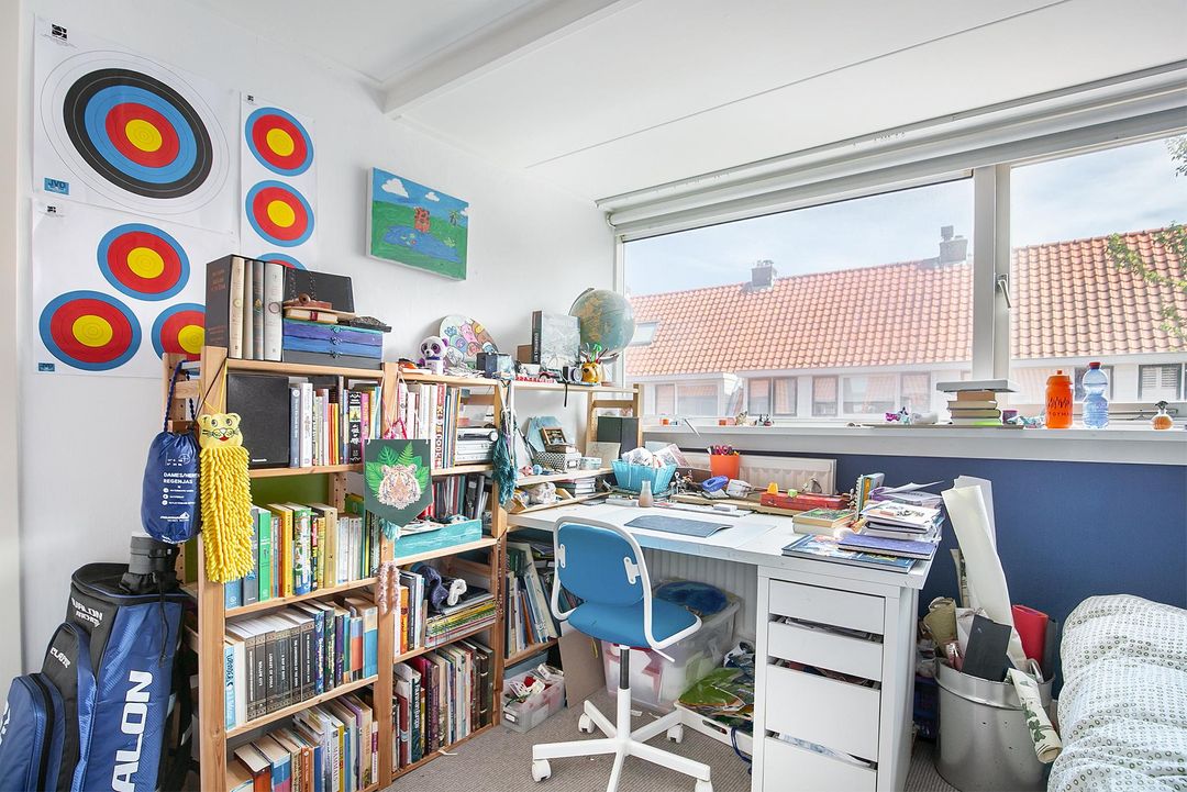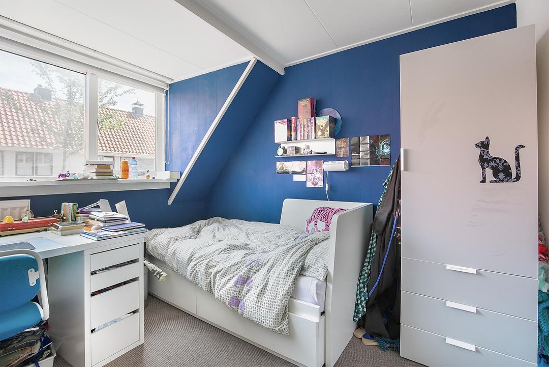 Middels de vaste trap op de eerste verdieping betreedt u de ruime voorzolder op de tweede verdieping. Hier is een inbouwkast gerealiseerd en deze ruimte biedt plaats voor de Nefit CV ketel (2008). Via de overloop heeft u toegang tot de 5e slaapkamer van deze woning. Hier is gekozen voor een combinatie van lichtgroen met wit aan zowel de wanden als het plafond. De kamer heeft 2 grote raampartijen in de dakkapel, elektrische screens voor het raam en extra bergruimte in de knieschotten.