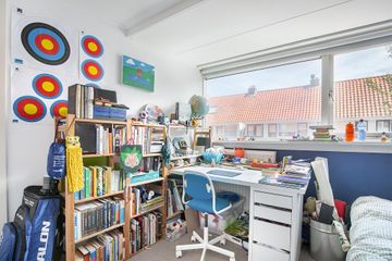 Slaapkamer 1 is afgewerkt met grijs & grijs/wit geblokt behang, nette vloerbedekking en heeft een fraai dakkapel. De 2e slaapkamer heeft een combinatie van wit en blauw behang en wordt zeer prettig belicht door de kamerbrede raampartijen. Slaapkamer 3 & 4 zijn volwaardige kamers maar iets kleiner van formaat. Ideaal als u boven een badkamer, thuiswerkplek of kantoor wilt realiseren. Alle kamers worden bijzonder prettig belicht door de aanwezige grote raampartijen.