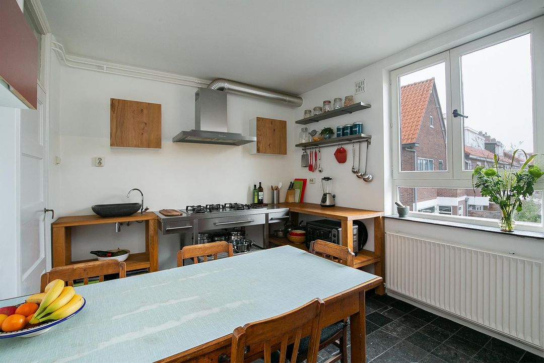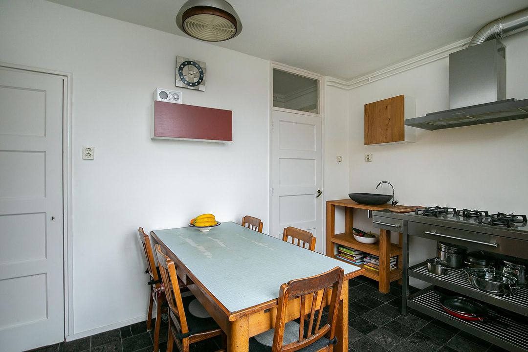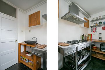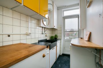 De bijkeuken is een praktische ruimte met een spoelblok, de CV ketel (Remeha) en de aansluiting voor uw wasmachine en droger. Het keukenblok veel opbergkasten voor extra bergruimte, heeft een granieten werkblad met spoelbak en heeft een gedeeltelijke houten werkblad. Vanuit de bijkeuken heeft u tevens toegang tot het kleine balkon op het noorden. Ideaal om bijvoorbeeld de was uit te hangen of lekker te genieten van het mooie weer.