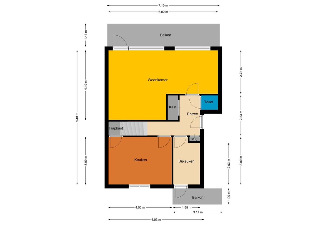 – Balkon op het noorden te betreden vanuit de bijkeuken