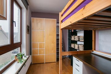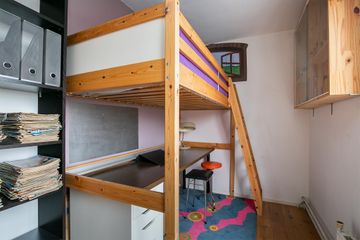 De masterbedroom is afgewerkt met witte wanden en heeft een praktische ruime bergkast. Daarnaast heeft de kamer 2 draaikiepramen waardoor de kamer perfect wordt belicht. Slaapkamer 2 heeft een laminaatvloer en ook deze kamer is voorzien van 2 draaikiepramen. De 3e slaapkamer heeft 2 openslaande ramen en is afgewerkt met een groene wand. Ook de 4e slaapkamer heeft 2 openslaande ramen en is afgewerkt met wit en paars aan de wanden.