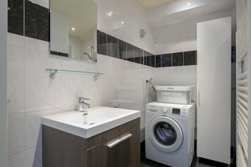 Douche, inloopdouche, wasmachineaansluiting, wastafel, wastafelmeubel