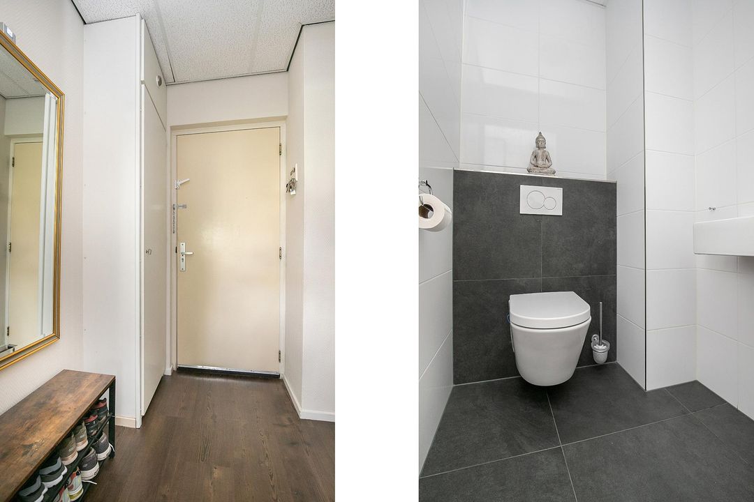 Via de voordeur betreedt u de ontvangsthal met toegang tot de woonkamer met open keuken, de meterkast, de badkamer, de separate toiletruimte en 1 slaapkamer. De nette pvc-vloer (2017) is vanuit hier doorgelegd over het gehele appartement m.u.v. het toilet en de badkamer.
